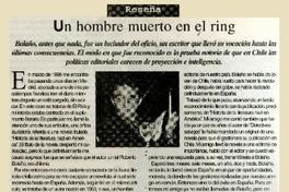 Un hombre muerto en el ring [artículo] / Luis López-Aliaga. El Sur (Diario : Concepción, Chile)-- ago. 3, 2003, p. 6 (suplemento "Actual") retr. .