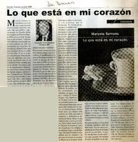 Materias: Autoras chilenas - Lo que está en mi corazón - Serrano, Marcela