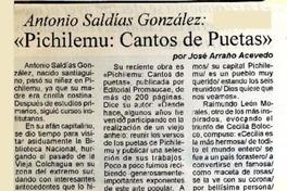 "Pichilemu : cantos de Puetas" [artículo] / José Arraño Acevedo. El Heraldo (Diario : Linares, Chile)-- dic. 5, 1998, p. 2. .