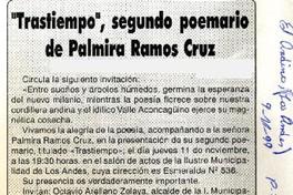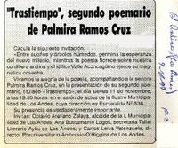 "Trastiempo", segundo poemario de Palmira Ramos Cruz [artículo] El Andino (Diario : Los Andes, Chile) nov. 9, 1999, p. 3. .