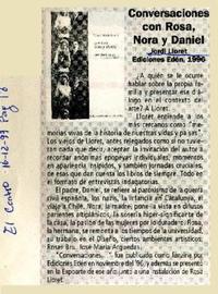 Conversaciones con Rosa, Nora y Daniel [artículo]. El Centro (Diario : Talca, Chile)-- dic. 16, 1999, p. 18. .