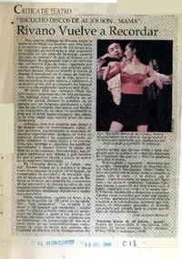 Rivano vuelve a recordar [artículo] / Juan Antonio Muñoz H. El Mercurio (Diario : Santiago, Chile)-- oct. 3, 2000, p. C13. .