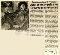 Actor estruja y pela a los famosos en café concert [artículo]. La Cuarta (Diario : Santiago, Chile)-- mayo 3, 2001, p. 18. .