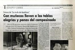 Con muñecos llevan a las tablas alegrías y penas del campesinado [artículo] / Manuel Herrera. El Centro (Diario : Talca, Chile)-- ene. 8, 2004, p. 31. .
