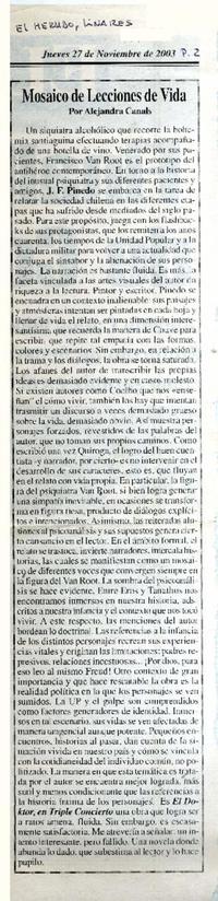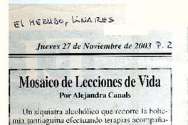 Mosaico de lecciones de vida [artículo] / Alejandra Canals. El Heraldo (Diario : Linares, Chile)-- nov. 27, 2003, p. 2. .