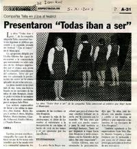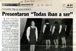 Presentaron "Todas iban a ser" [artículo]. La Estrella (Diario : Iquique, Chile)-- nov. 5, 2003, p. A31. .