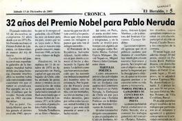 32 años del Premio Nobel para Pablo Neruda [artículo]. El Heraldo (Diario : Linares, Chile)-- dic. 13, 2003, p. 5. .