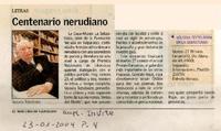 Centenario nerudiano [artículo]. El Mercurio (Diario : Valparaíso, Chile)-- ene. 23, 2004, p. 4 (suplemento "Invite") .
