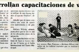 Desarrollan capacitaciones de voz [artículo]. La Estrella (Diario : Iquique, Chile)-- nov. 5, 2003, p. A31. .