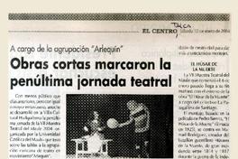 Obras cortas marcaron la penúltima jornada teatral [artículo] / Manuel Herrera. El Centro (Diario : Talca, Chile) ene. 10, 2004, p. 28. .