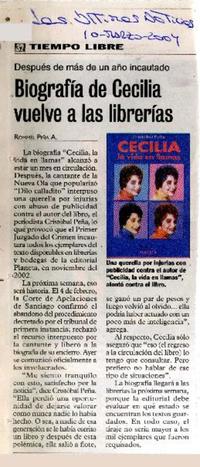 Biografía de Cecilia vuelve a las librerías [artículo] / Rommel Piña A. Las Últimas Noticias (Diario : Santiago, Chile)-- mar. 10, 2004, p. 32. il. .