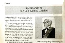 Recordando a don Luis Gómez Catalán [artículo]. Criterior (Revista : Santiago, Chile)-- no. 2 (jul. 1999) p. 24. .