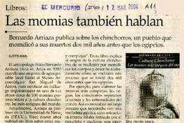Las momias también hablan [artículo] / Eliette Angel. El Mercurio (Diario : Santiago, Chile) mar. 12, 2004, p. A11. il. .