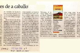 Hombres de a caballo [artículo] / Mario Valdovinos. El Mercurio (Diario : Santiago, Chile) mar. 12, 2004, p. 9 (suplemento "Revista de Libros") il. .