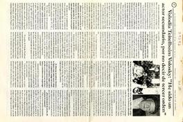 Volodia Teitelboim Volosky: "He sido un actor secundario, por no decir de tercer orden" [entrevistas] [artículo] : El Divisadero (Diario : Aysén, Chile)-- ago. 17, 2002, p. 8-9. retr. .