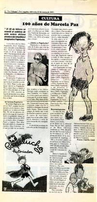 100 años de Marcela Paz. [artículo] La Tribuna (Diario : Los Angeles, Chile)-- mar. 13, 2002, p. 2. il., retr. .