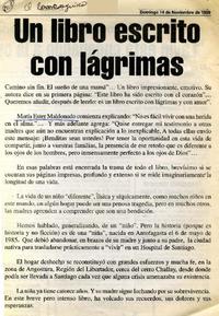 Un libro escrito con lágrimas [artículo] / Héctor González V. El Rancagüino (Diario : Rancagua, Chile)-- nov. 14, 1999. .