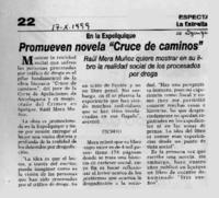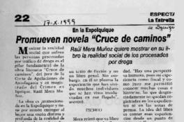 Promueven novela "Cruce de caminos". [artículo] La Estrella de Iquique (Diario : Iquique, Chile)-- oct. 17, 1999, p. 22. .
