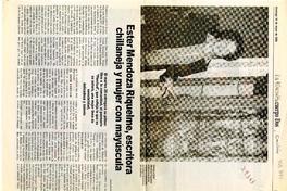 Ester Mendoza Riquelme, escritora chillaneja y mujer con mayúscula [artículo] / Patricia Orellana. La Discusión (Diario : Chillán, Chile)-- mayo 18, 2003, p. B7 (segundo cuerpo) retr. .