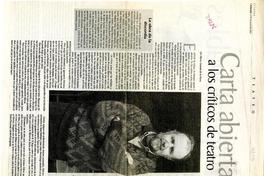 Carta abierta a los críticos de teatro. [artículo] La Tercera (Diario : Santiago, Chile)-- ago. 2, 2001, p. 7. retr. .