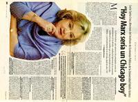 "Hoy Marx sería un Chicago boy" [artículo] Margarita Serrano. La Tercera (Santiago, Chile)-- ago. 24, 2003, p. 26-27. retr. .