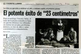 El potente éxito de "23 centímetros" [artículo] / Marietta Santi. Las Últimas Noticias (Diario : Santiago, Chile)-- oct. 20, 2003, p. 36 (suplemento "Tiempo Libre") retr. .