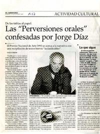 Las "Perversiones orales" confesadas por Jorge Díaz [artículo] / Tania Altamirano. El Mercurio (Diario : Santiago, Chile)-- feb. 25, 2007, p. A17. .