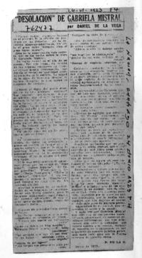 Desolación" de Gabriela Mistral [artículo] / Daniel de la Vega. La Nación (Diario : Santiago, Chile)-- jun. 24, 1923, p. 4. .