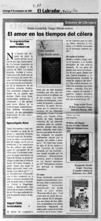 El amor en los tiempos del cólera [artículo] / Jorge Andrés Palma. El Labrador (Melipilla, Chile)-- nov. 9, 2003, p. 11. il. .