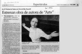 Estrenan obra de autora de "Arts". [artículo] El Mercurio (Santiago, Chile)-- dic. 27, 2003, p. 31. retr. .