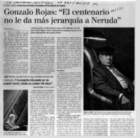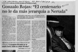 Gonzalo Rojas: "El centenario no le da más jerarquía a Neruda" [artículo] Nelson Sandoval.