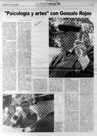 Psicología y artes" con Gonzalo Rojas [artículo] / Luis Contreras Jara. La Discusión (Chillán, Chile)-- ene. 11, 2004, p. B7 (suplemento "Cuerpo Dos"). retr. .