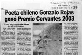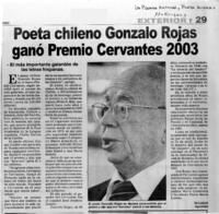 Poeta chileno Gonzalo Rojas ganó Premio Cervantes 2003. [artículo]