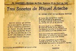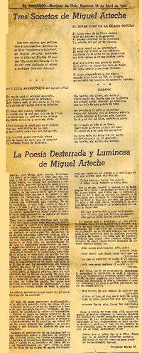 La poesía desterrada y luminosa de Miguel Arteche [artículo] / Fernando Durán V. El Mercurio (Santiago, Chile)-- nov. 12, 1961. .