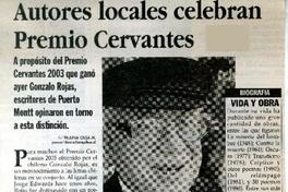 Autores locales celebran Premio Cervantes [artículo] / Paulina Ossa M. El Llanquihue (Diario : Puerto Montt, Chile)-- dic. 11, 2003, p. A15. retr. .