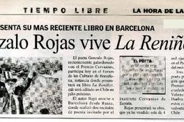 Gonzalo Rojas vive la reniñez. [artículo] La Hora de la Tarde (Santiago, Chile)-- mayo 17, 2004, p. 17. retr. .