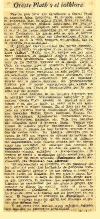 Oreste Plath y el folklore [artículo] R.L.