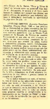 Materias: Folklore chileno - Autores chilenos - Plath, Oreste