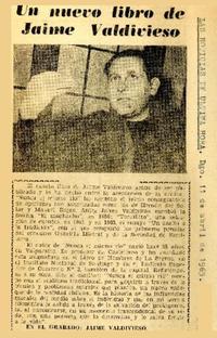 Un Nuevo libro Jaime Valdivieso. [artículo] Ultima Hora (Diario : Santiago, Chile)-- abr. 11, 1965. .