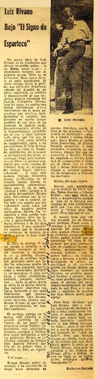 Luis Rivano bajo "El signo de Espartaco" [artículo] Guillermo Ferrada.