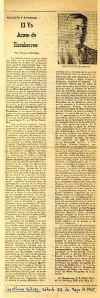 El yo acuso de Recabarren [artículo] / Marcelo Segall. Las Últimas Noticias (Diario : Santiago, Chile)-- mayo 22, 1965. .