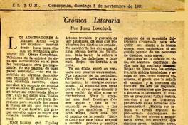 Crónica literaria [artículo] / Juan Loveluck. El Sur (Diario : Concepción, Chile)-- nov. 5, 1961. .