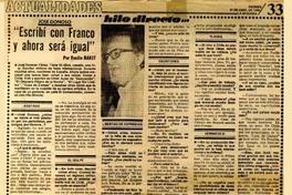 Escribí con Franco y ahora será igual" [artículo] / Emilio Bakit. La Segunda (Santiago, Chile)-- abr. 11, 1980, p. 33. retr. .