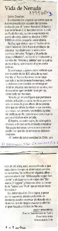 Vida de Neruda [artículo] José Pineda Devia.