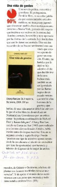 Una vida de gestos [artículo] / H.S. Capital (Santiago, Chile)-- no. 136 (jul. 16, 2004) p. 153. il. .