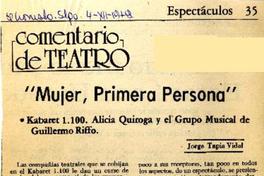 Mujer, primera persona" [artículo] Jorge Tapia Vidal.