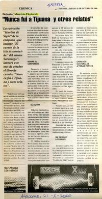 Nunca fui a Tijuana y otros relatos". [artículo] Atacama (Copiapó, Chile)-- oct. 21, 2000. .