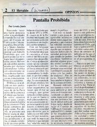 Pantalla prohibida [artículo] / Ursula Janés. El Heraldo (Linares, Chile)-- mayo 28, 2004, p. 2. .