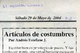 Artículos de costumbres [artículo] / Andrés Estefane J. El Heraldo (Linares, Chile)-- mayo 29, 2004, p. 2. .