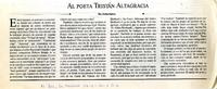 Al Poeta Tristán Altagracia [artículo] / Carlos Cuevas. El Día (Diario : La Serena, Chile)-- jul. 14, 2004, p. 4. .